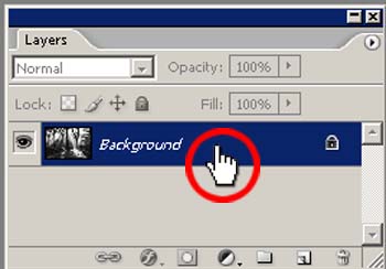 Step 3: Double click on the blue area of the “background” layer in the layers palette.