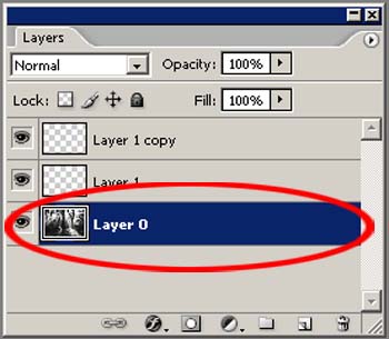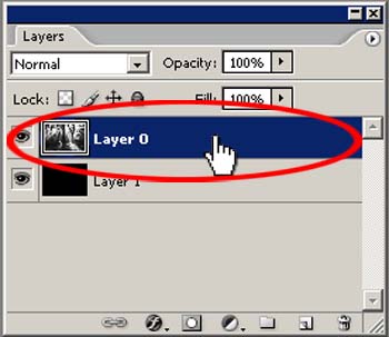 Step 10: Click on “layer 0” in the layers palette to make it active. It should now be shown in blue.