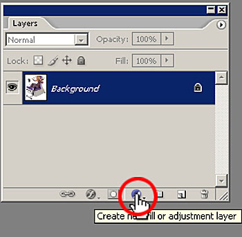 Step 2: In the layers palette click on the half black and half white circle. This is the “create new fill or adjustment layer” icon.