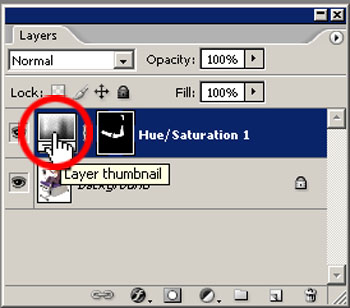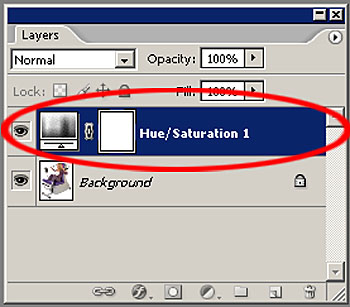 Your layers palette should now look like this, with a new “Hue/Saturation 1” layer.