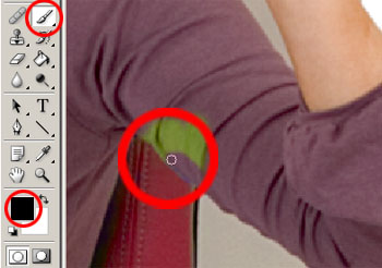 Step 5: Now we are going to paint the new cushion colours on. Zoom in on the area of the image where you are going to start painting. The higher the magnification the better, as we need to work to fine edges.