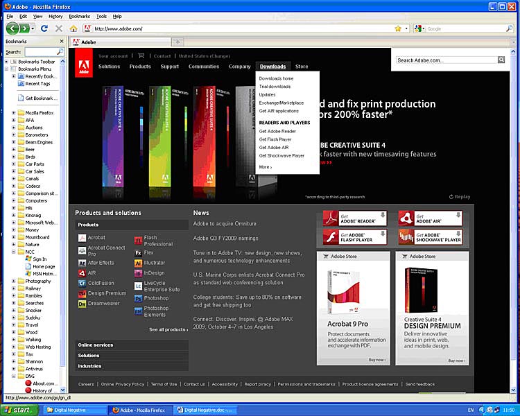 2.1 Visit the adobe web site www.adobe.com and you should see something similar to below. (As at September 09, but subject to site up-dates.)