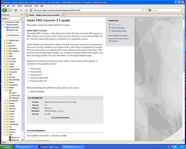 2.3 From the next screen below, select DNG Converter 5.5 up-date (or whatever the latest version is) from the right-hand list.