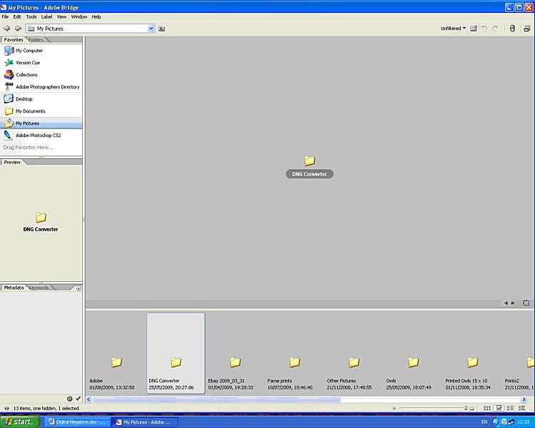 3.2 It is convenient to have a short cut dragged into a folder in “My Pictures” so that conversions may be carried out within “My Pictures” from Adobe Bridge as shown below. (Assuming that you choose to download images to a folder within the *My Pictures” folder).
