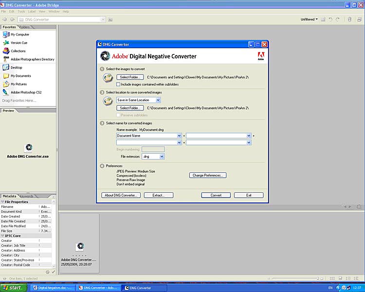 3.0 How to to use the Adobe Digital negative Converter.