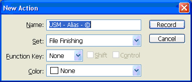4.8. Name the action USM – Alias – © in the new Action dialog