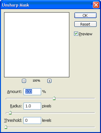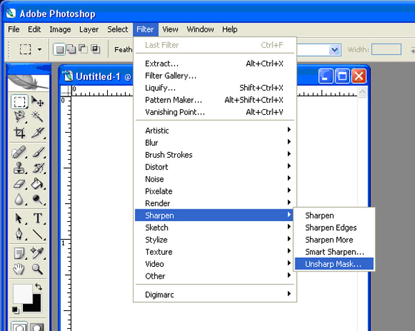 4.10. From the Filter drop down menu select Sharpen>Unsharp Mask to open the filter’s dialog as is done in Figure 8.