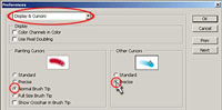 Set your Photoshop tools for these workshops, using the display and cursors pallet.
