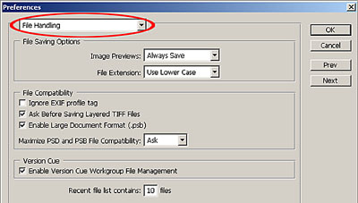 The next dialog box is File Handling. The image below shows the File Handling default settings. You shouldn’t need to make any changes, but be sure that your default settings match these before you continue.