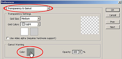 The only option we need to change in this dialog box is the “Gamut Warning”. The Gamut Warning is an option in Photoshop that when activated will show us colours that are beyond the printing range of our inkjet printers (more about this at a later date). The Gamut Warning defaults to a mid grey, this should be changed to a more vivid colour which very rarely appears in the types of photographs we shoot. To change the Gamut Warning click